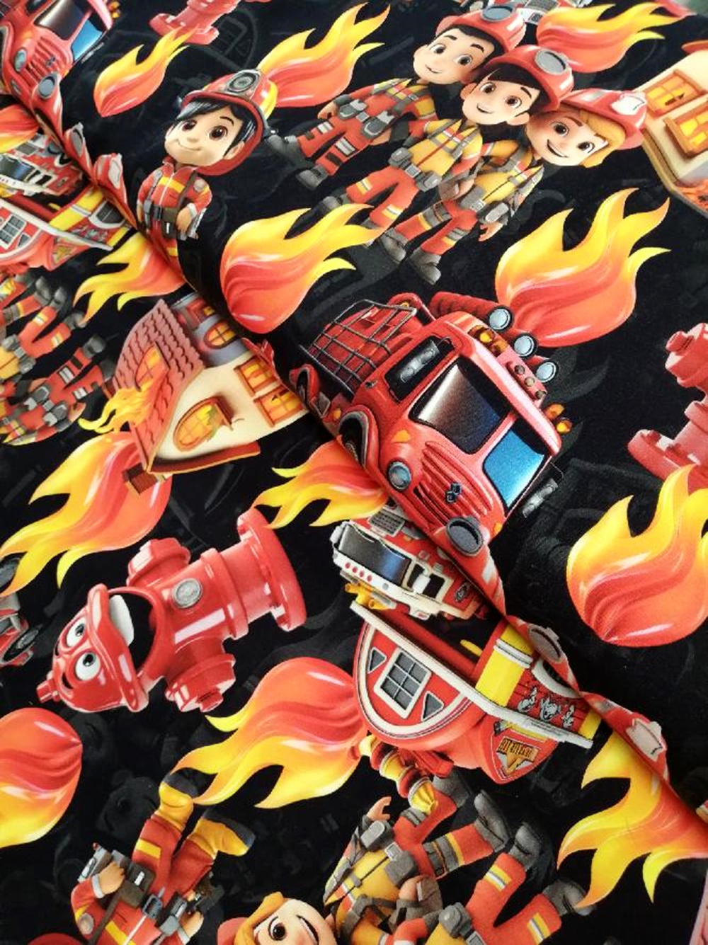 Bavlněný úplet hasiči na černé 030048