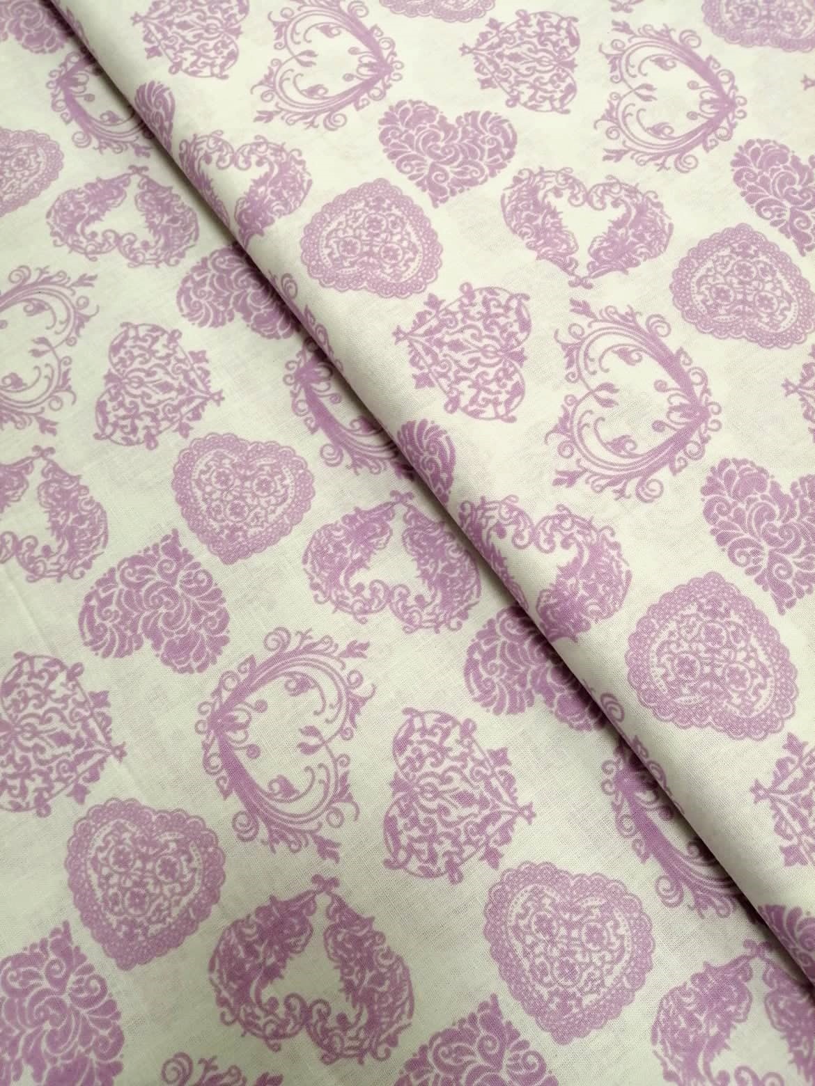 Plátno lila srdce na bílé 060001