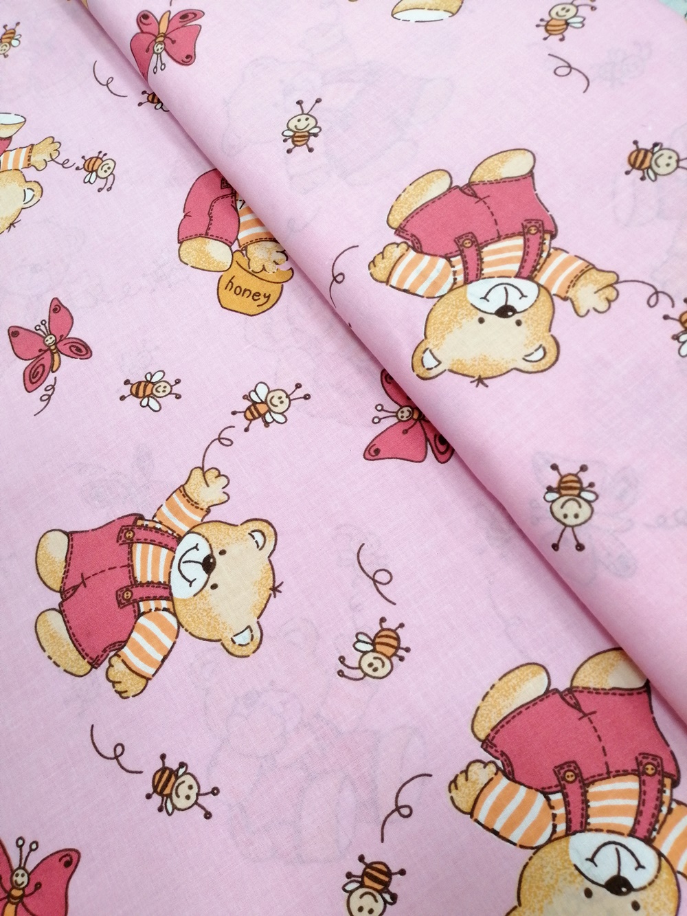 Plátno méďa na růžové 040019