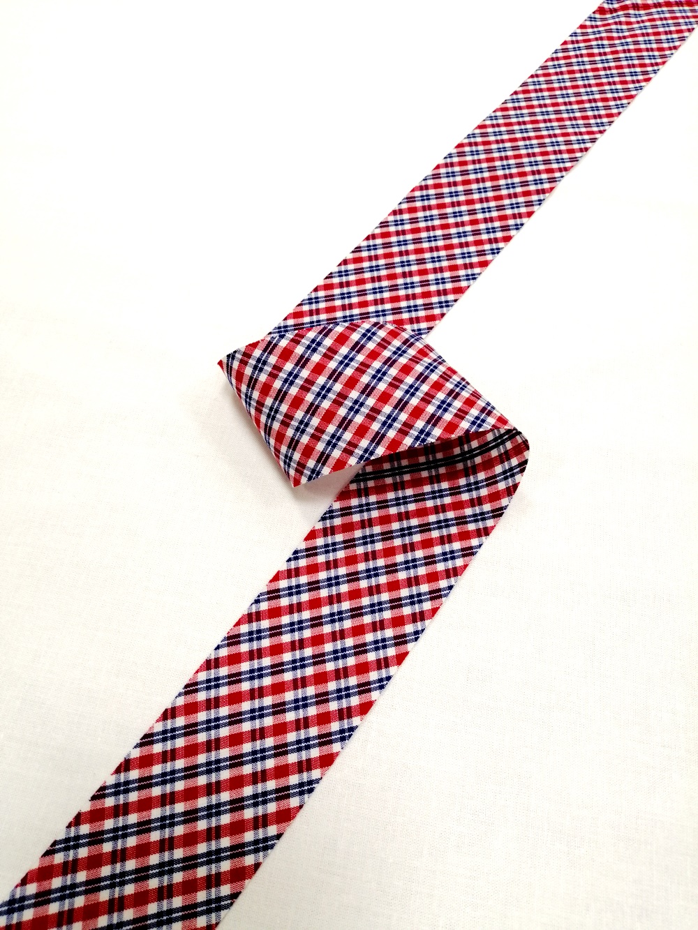 Nezažehlený bavlněný šikmý proužek, nejvhodnější pro olemování se zakladačem.